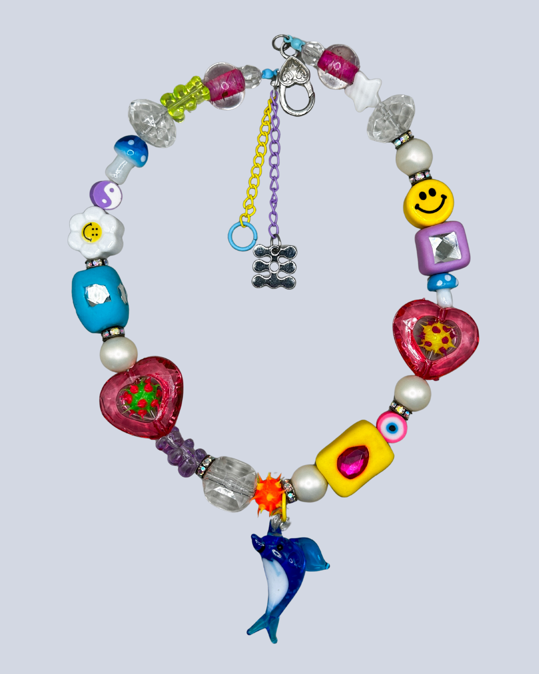 Meet your new favorite accessory! The one-of-a-kind CYBER DOLPHIN necklace is bursting with vibrant energy and instant joy. Handcrafted with playful clay accents and a delightful dolphin pendant, it's the perfect statement piece for anyone who loves color and creativity.