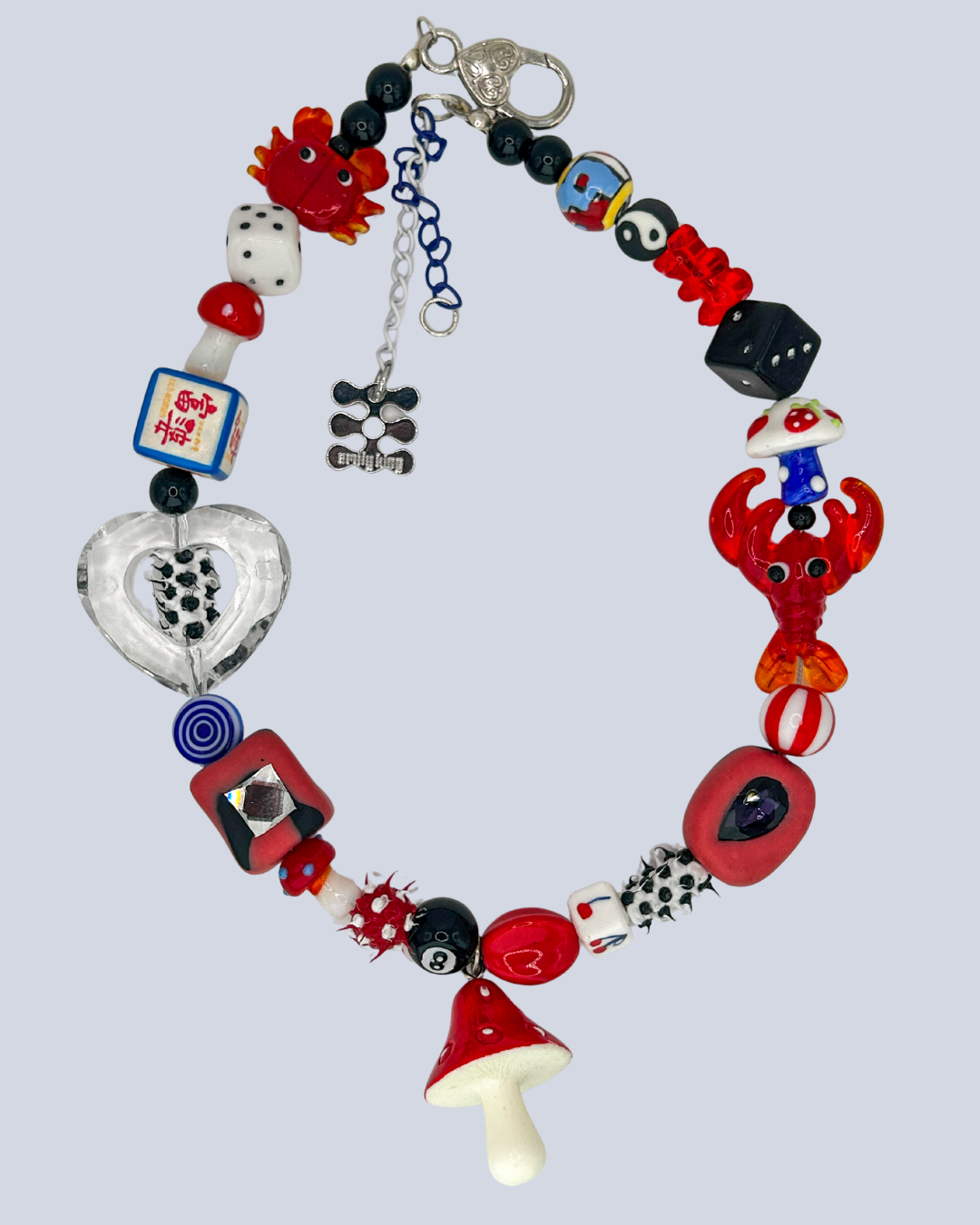 Tumble down the RABBIT HOLE with this enchanting red and black handmade necklace. Perfect for those who embrace the whimsical, the mystical, and the delightfully strange.